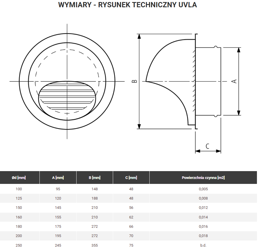 Elementy UVLA mogą być stosowane jako czerpnia lub wyrzutnia powietrza.