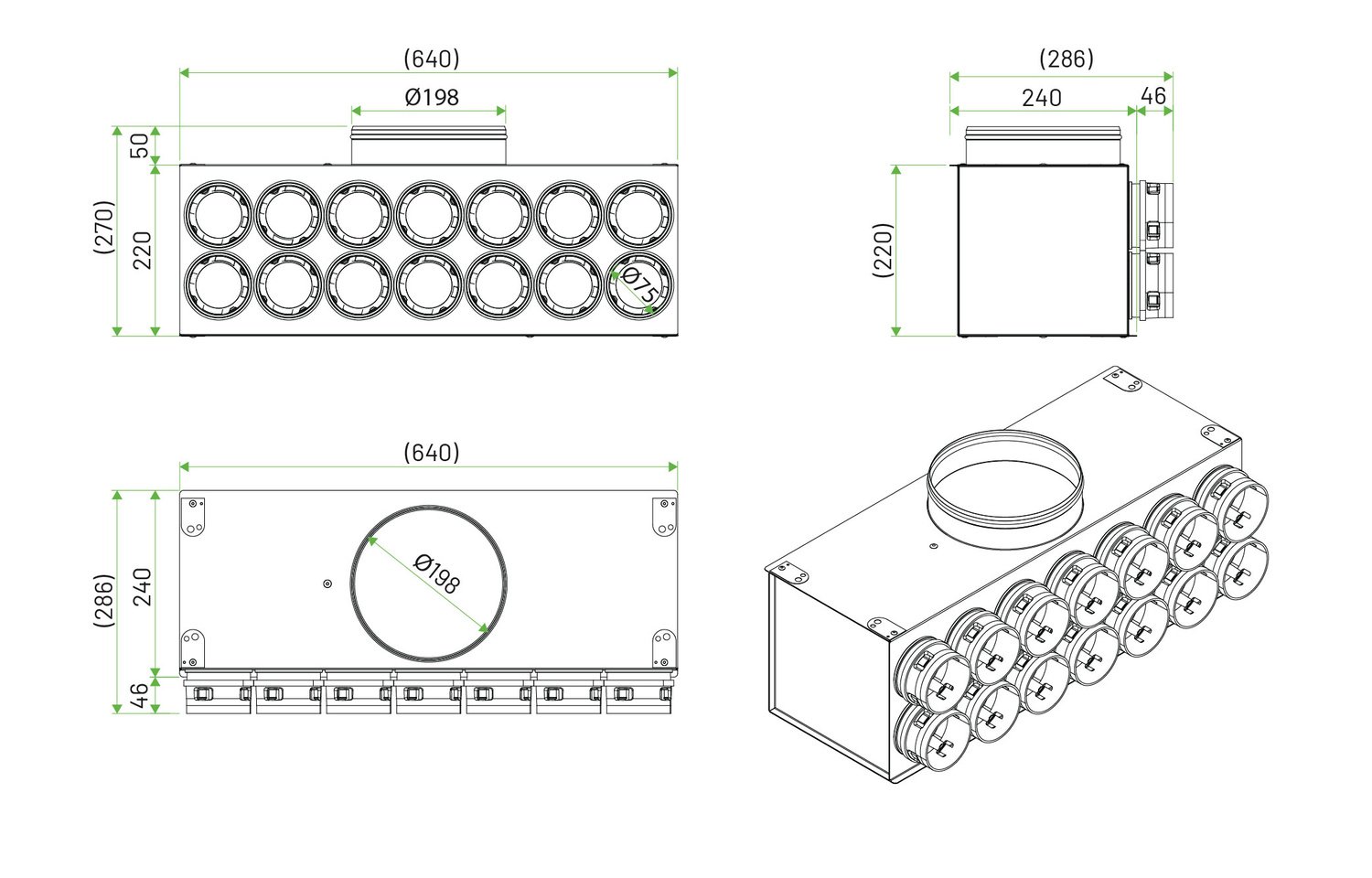 PEFLEX Rozdzielacz dwurzędowy Standard 14x75/198 NCOR