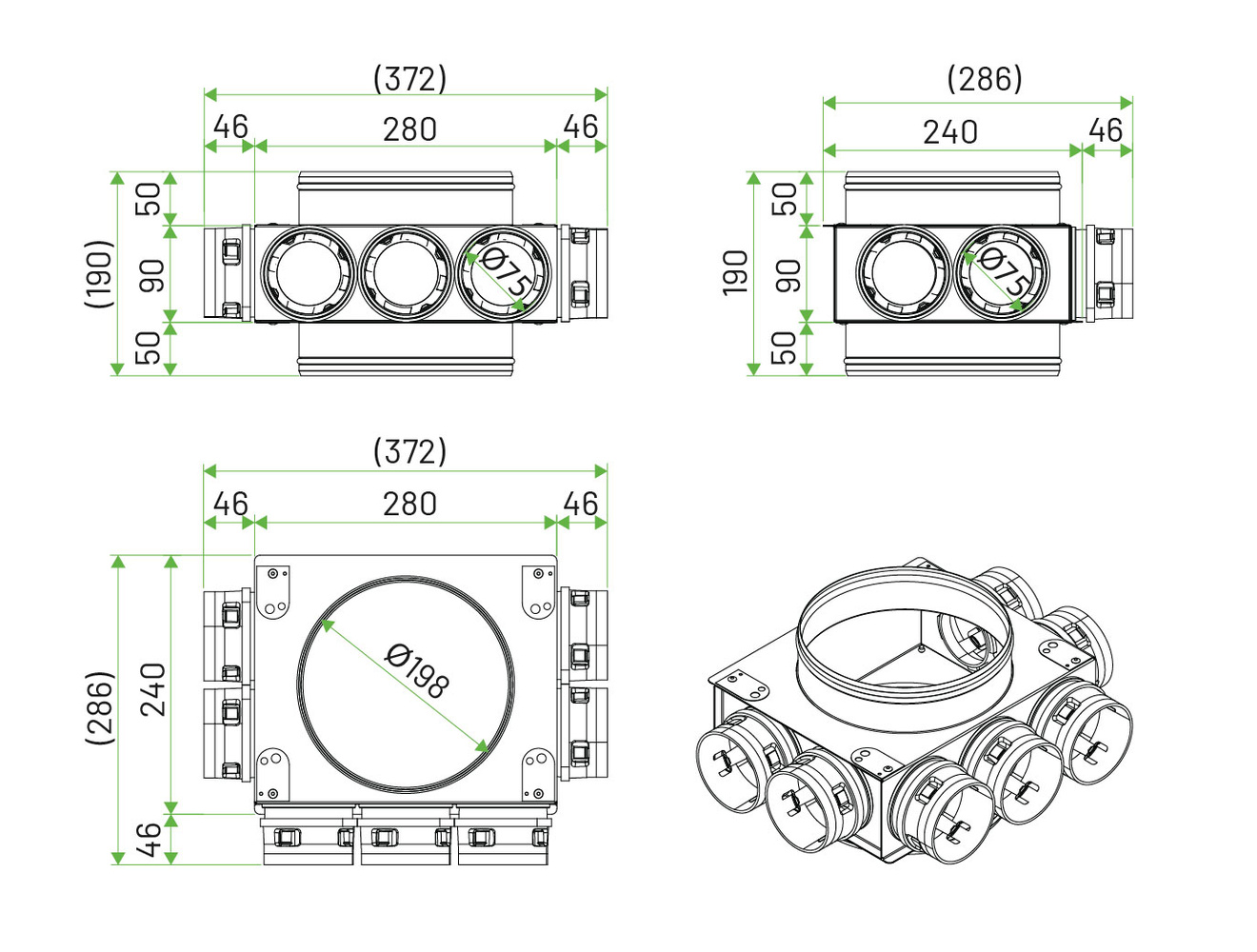 PEFLEX Rozdzielacz płaski przelotowy Standard 7x75/198 NCPD