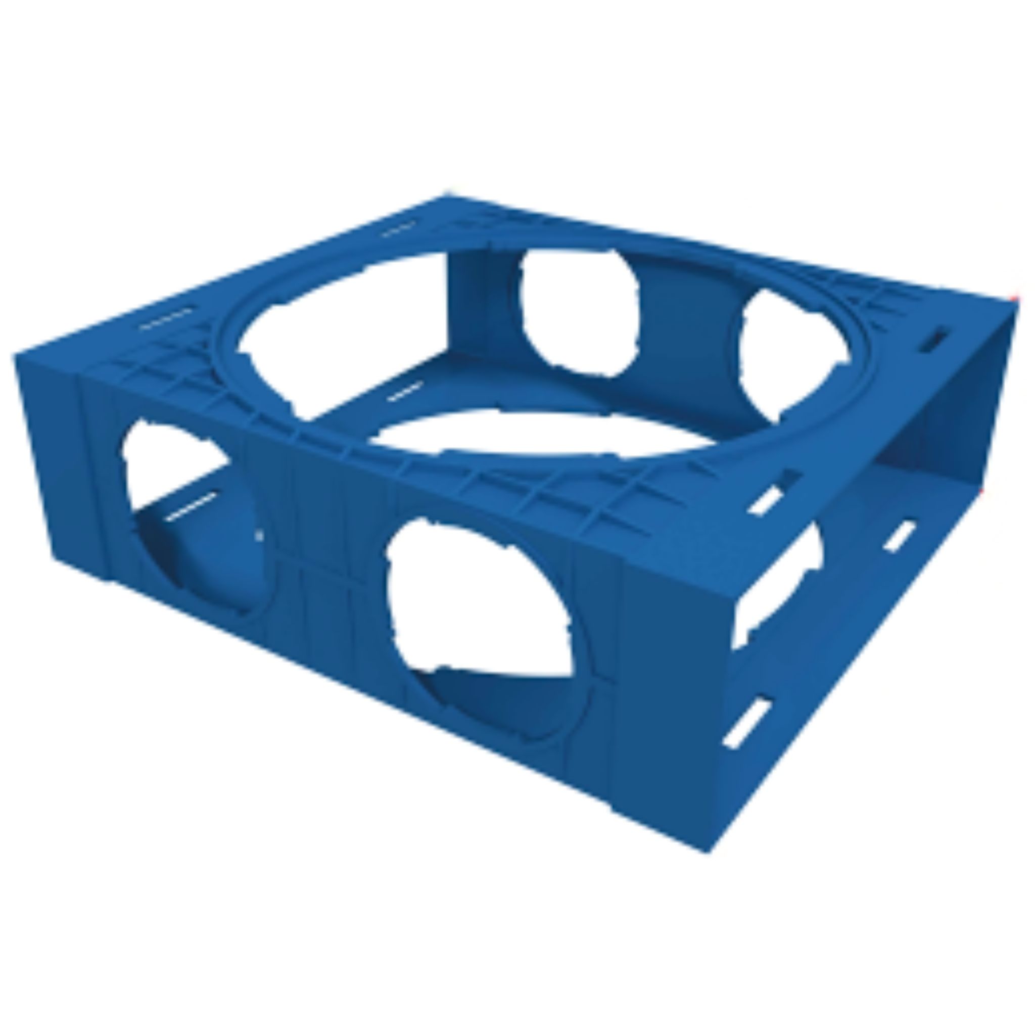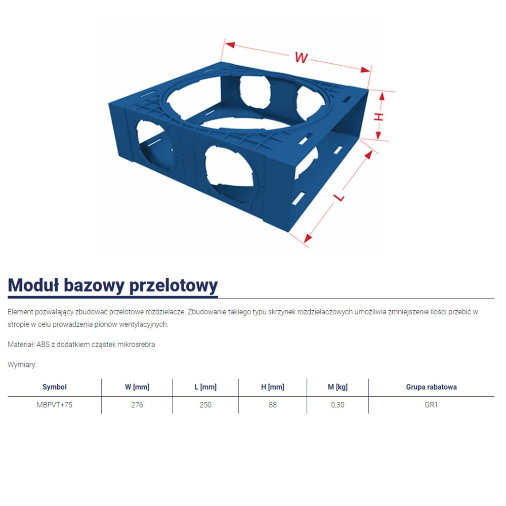 Element pozwalający zbudować przelotowe rozdzielacze. Zbudowanie takiego typu skrzynek rozdzielaczowych umożliwia zmniejszenie ilości przebić w stopie w celu prowadzenia pionów wentylacyjnych.
