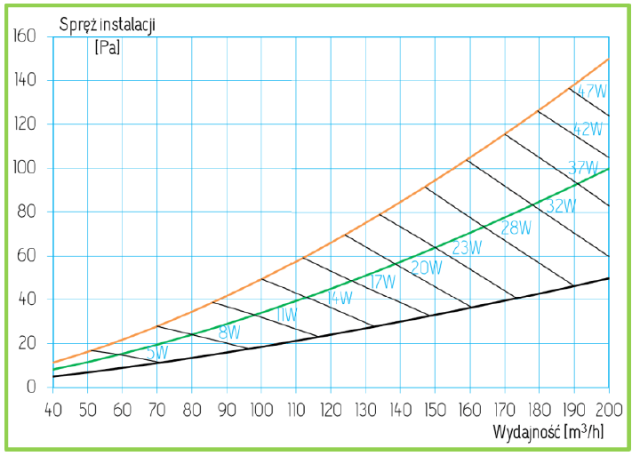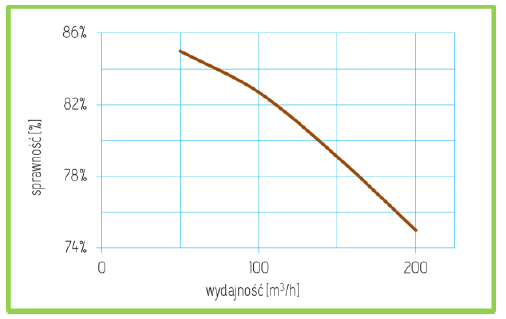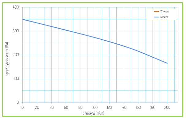 Ten model jest wyposażony w nowoczesny wymiennik entalpiczny. Odzyskuje on nie tylko ciepło, lecz także wilgoć z powietrza odprowadzanego na zewnątrz budynku. W ten sposób dodatkowo ogrzewa oraz nawilża to, które jest wtłaczane do pomieszczeń. To rozwiązanie pozwala ograniczyć problem związany z zaduchem panującym w nich latem oraz zbyt suchym powietrzem zimą. Strumień nawiewu i wywiewu wynosi 100–200 m3/h. Oznacza to, że urządzenie pracuje wydajnie oraz efektywnie.