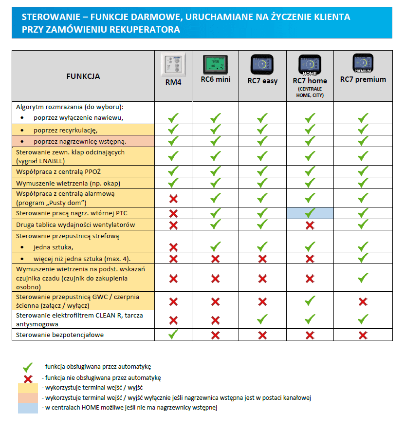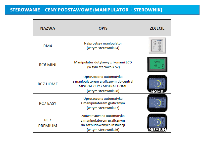 Sterowanie RC7 PREMIUM umożliwia wykorzystanie niezwykle intuicyjnego graficznego manipulatora RC7 do obsługi bardziej rozbudowanych instalacji wentylacyjnych, m. in. z wieloma nagrzewnicami/chłodnicami czy przepustnicami strefowymi. Oprócz funkcji występujących w standardowym sterowaniu RC7, posiada również wiele funkcji dodatkowych jak np. praca według wskazań czujnika wilgotności, czujnika CO2 czy natychmiastowe przewietrzanie budynku w reakcji na alarm czujnika czadu. Manipulator jest niezwykle wygodny w obsłudze, a samo menu jest wzorowane na mechanizmach stosowanych w popularnych smartfonach. Komunikaty są podawane w opisowy sposób, dzięki czemu właściwie nie trzeba zaglądać do instrukcji obsługi. Głównym założeniem sterowania RC7 PREMIUM jest optymalne działanie centrali wentylacyjnej bez potrzeby regulacji ze strony użytkownika.