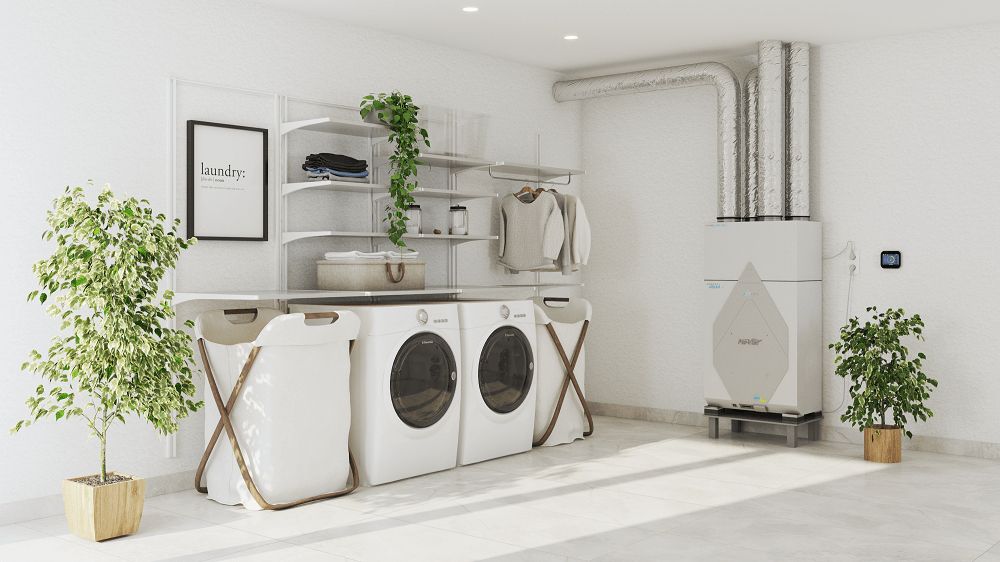 Centrala wentylacyjna ze zintegrowanym modułem pompy ciepła MISTRAL HOME PC zapewnia doskonały, automatycznie regulowany komfort i zdrowy klimat w pomieszczeniach w ultraenergooszczędny sposób i to przez przez cały rok.