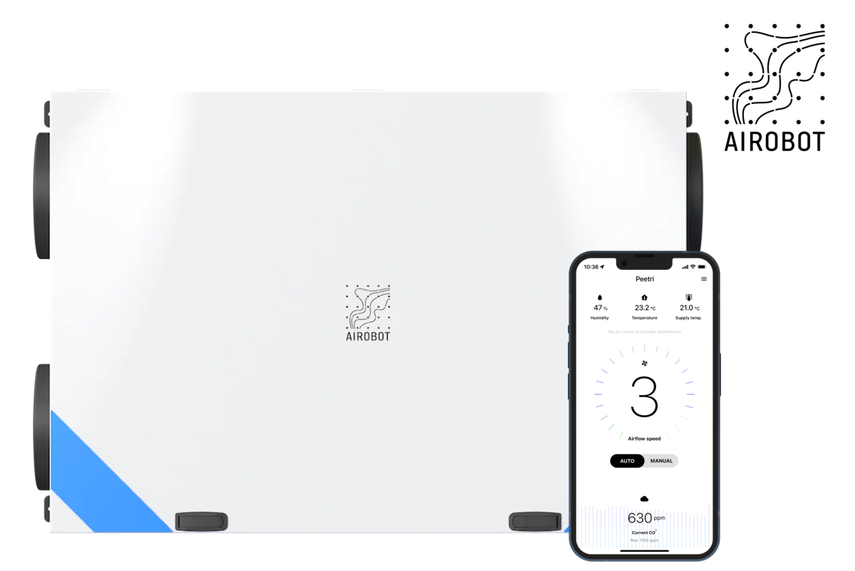 AIROBOT to nowoczesne centrale wentylacyjne z odzyskiem ciepła – rekuperacją z czujnikami: stężenia CO2, poziomu zanieczyszczeń PM, temperatury, wilgotności i jakości powietrza VOC. AIROBOT może dodatkowo sterować modułem nawilżania i ogrzewaniem podłogowym.